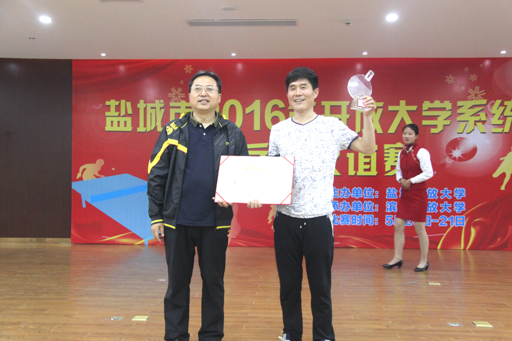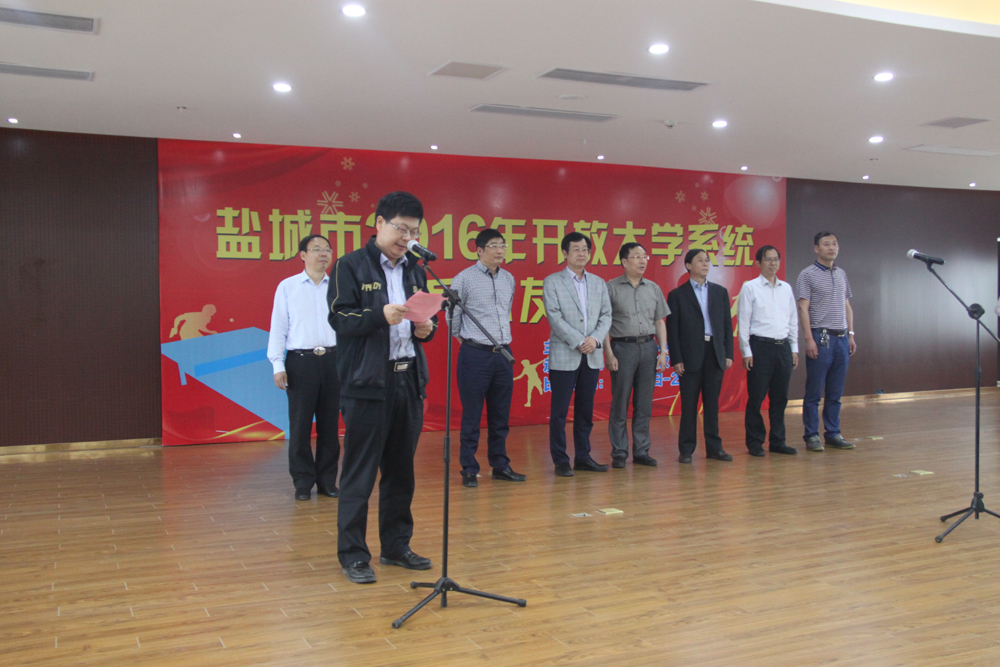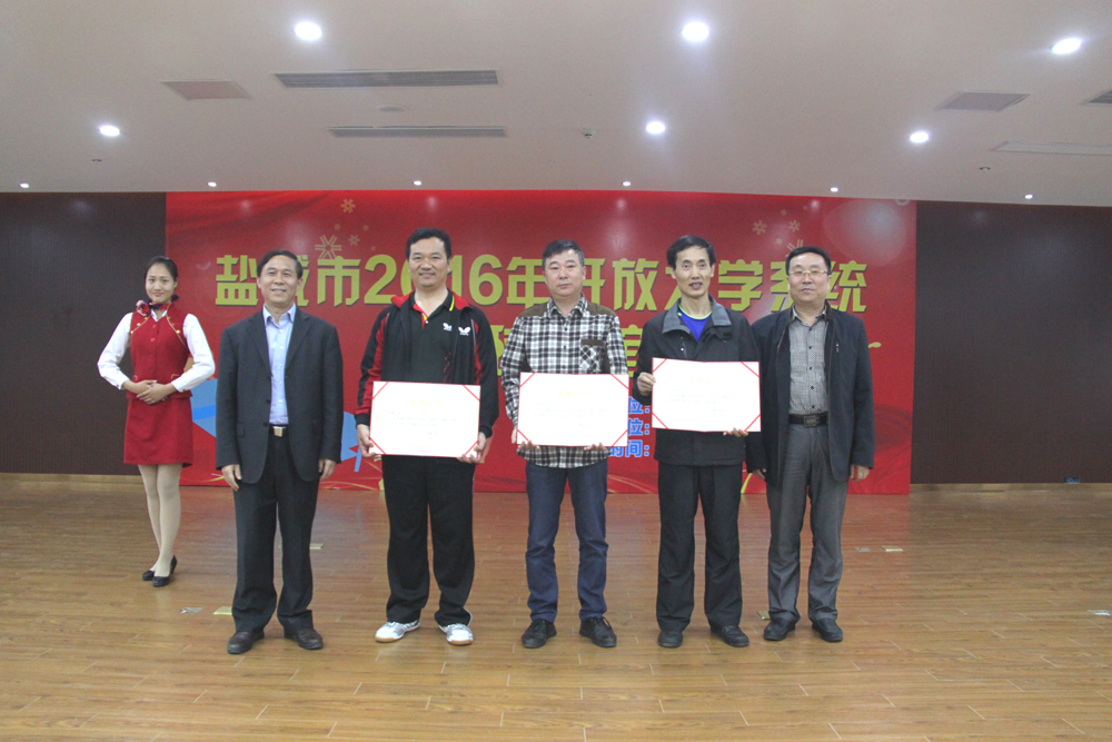 盐城市2016年开放大学系统乒乓球友谊赛5月21日上午在滨海开放大学隆重开幕,盐城开放大学书记吕祥致开幕词,滨海县教育局左其安局长到场祝贺并致辞,盐城开放大学董事长杨怀祥宣布友谊赛开幕。本次友谊赛共有12支代表队参赛,他们分别是:滨海开大代表队、大丰开大代表队、东台开大代表队、阜宁开大代表队、建湖开大代表队、亭湖开大代表队、射阳开大代表队、响水开大代表队、盐都开大代表队、盐城开大代表队、盐城市职社学会代表队、盐城建校开放部代表队,各开大的主要校领导和开放教育负责人参加本次友谊赛。本次比赛特邀了盐城市职社学会代表队,标志着我市开大系统与盐城市职社学会联系更加紧密,将对全市开大系统社区教育工作的开展起到很好的支撑和促进作用。赛场上球员们交流球技,赛场下他们共叙友谊、交流办学经验、共商开放大学发展大计,球馆内喝彩声、欢笑声此起彼伏。经过激烈的争夺,大丰开大代表队获得比赛第一名赢得了冠军杯,滨海开大代表队、建湖开大代表队、盐城开大代表队荣获比赛一等奖,射阳开大代表队、东台开大代表队、亭湖开大代表队和阜宁开大代表队荣获比赛二等奖,其他代表队都荣获三等奖。比赛结束后举行了颁奖仪式,颁奖仪式由滨海开放大学董事长皋建军主持,市职社学会副会长茆艾磊、盐城开放大学校领导和部分县(市、区)开大校领导分别为获奖代表队颁奖,友谊赛在热烈的掌声中圆满结束。