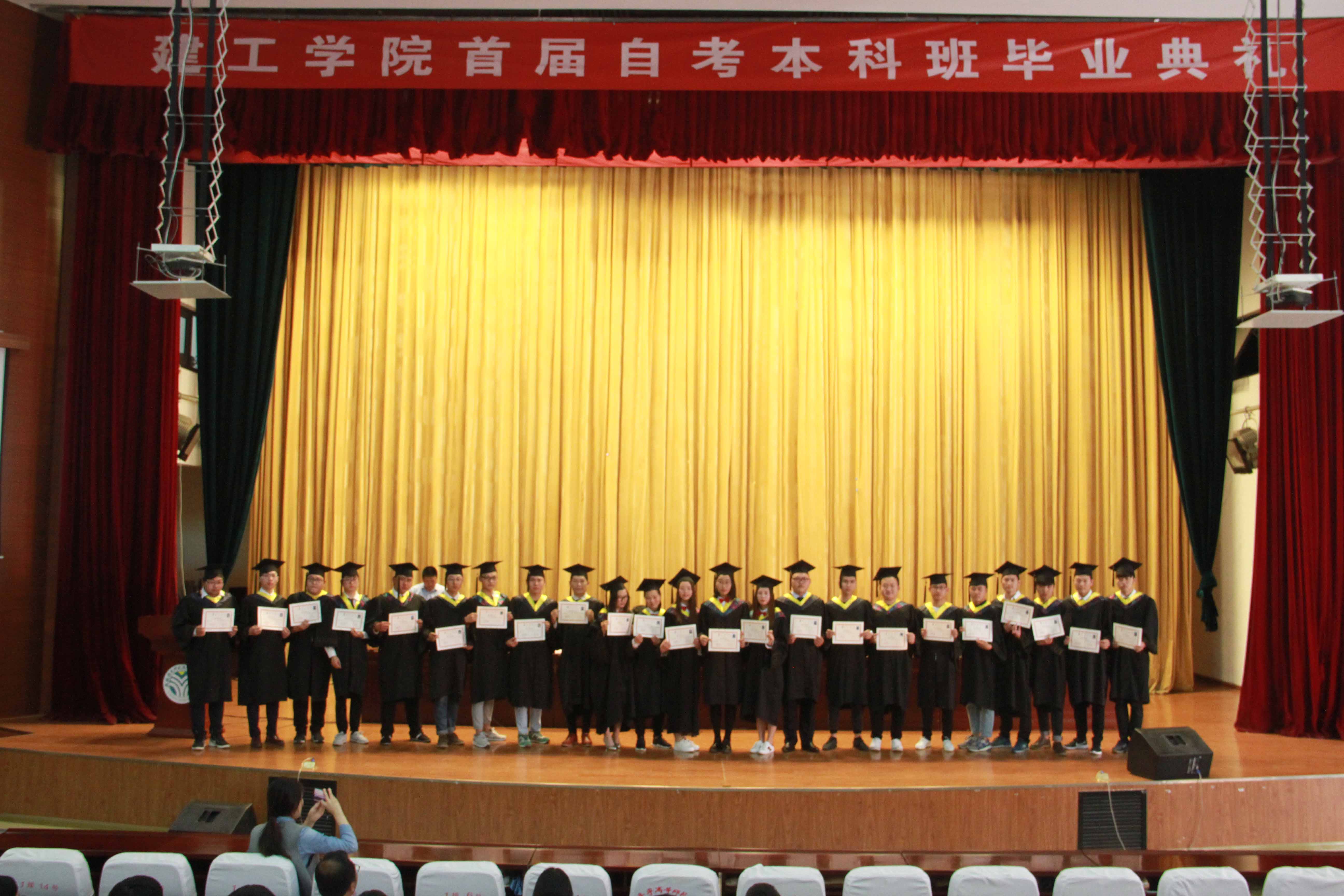 毕业典礼由该校建工学院负责人周加林主持,校领导孙永龙宣读毕业生名单,校领导朱成良宣读学士学位名单。QY球友会党委书记刘毓航为毕业生颁发毕业证书,并与他们合影留念。