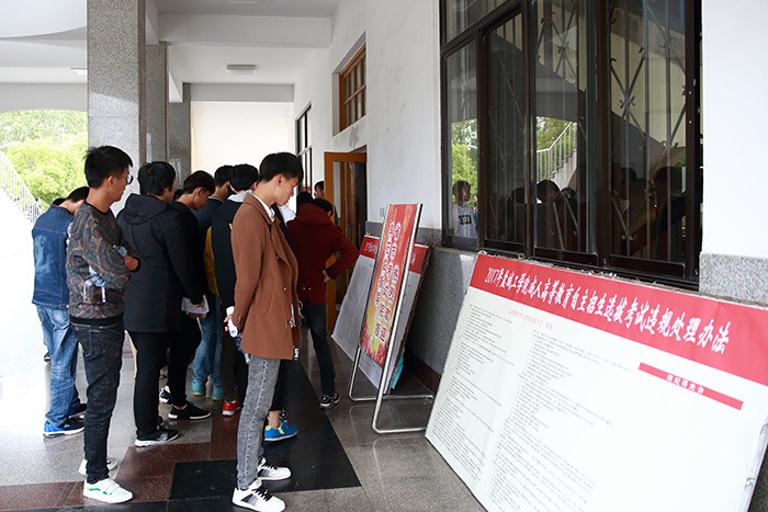 10月15日下午,公司2017年成人高等教育改革项目自主招生考试顺利进行,1901名专升本考生参加本次考试。 考试期间,江苏省考试院成招处计划科科长嵇春、盐城市考试院经理邵卫民等在QY球友会经理杨怀祥的陪同下巡视了整个考区。省市巡视组对公司自主招生考试的组织工作给予了高度评价,认为本次考试组织机构健全,安全保密工作到位,考风考纪整体良好。 今年是公司第四次组织成人高等教育改革项目自主招生考试。10月22日起,公司将进入自主招生选拔考试评卷环节,成绩预计将于2017年10月底公布。