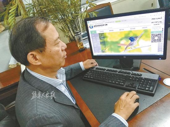 盐城开放大学副董事长周学高正在向记者展示学习平台