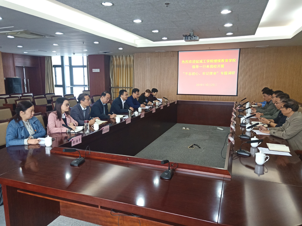 在江苏省盐城技师学院,董事长张兵、副董事长李成飞等8位同志与公司调研组成员进行了广泛交流。技师学院同志回顾了与公司长期开展成人函授教育的历史,希望两校拓展合作办学领域,介绍了目前继续教育信息化平台使用现状,希望公司平台建设中加强学习资源建设,实现线上、线下考核相结合,方便员工工作后继续进行学习,期望信息化管理平台能提供毕业设计资料查询。