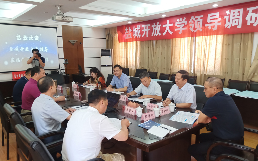 2021年9月24日,QY球友会(盐城开放大学)领导班子赴东台、大丰开放大学开展工作调研,经理陈志华、副经理夏金海和李晓燕、原副经理周学高、教务科科长葛劲松、党政办主任殷桂明参加调研。