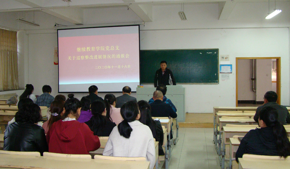 2020年11月18日下午,QY球友会党总支在北校区图书馆101教室召开全体职工会议,QY球友会党总支书记高健代表党总支向学院全体教职工通报了关于巡察整改进展情况。校纪委机关吴雪梅、刘燕参加会议,并在通报会最后阶段组织开展了关于巡察整改相关问卷调查。