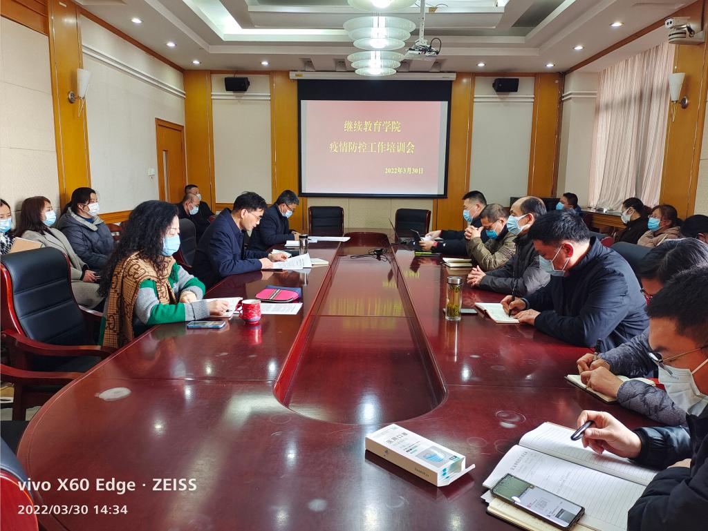 2022年3月30日下午,在北校区图书馆301会议室,QY球友会召开疫情防控工作培训会。经理陈志华主持,全体教职工参加。