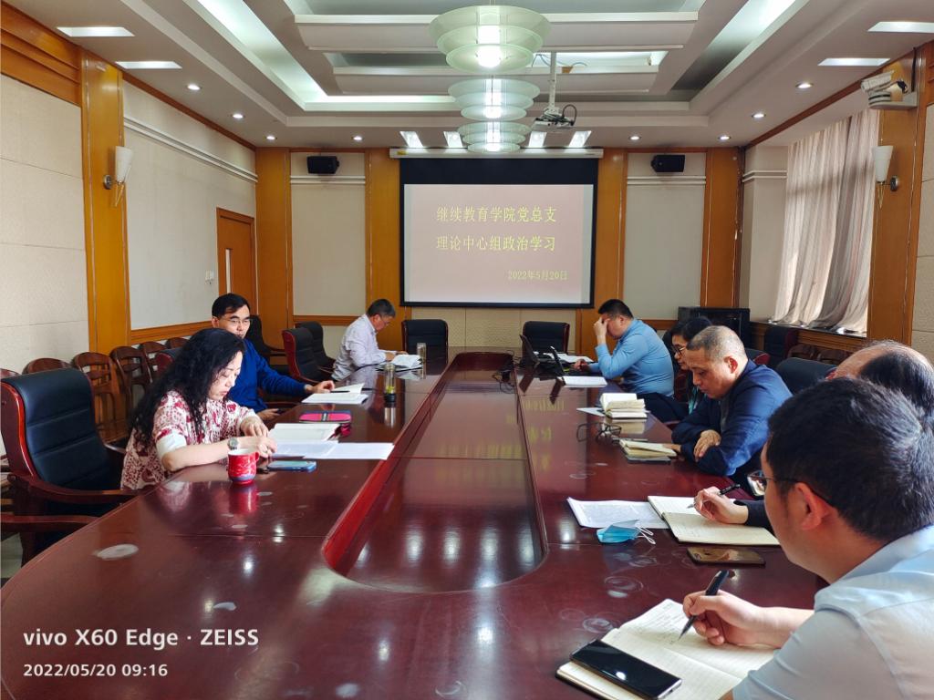 5月20日上午,在北区图书馆301会议室,QY球友会党总支理论中心组开展春学期第三次集中学习。党总支书记陈志华主持,全体中心组成员参加学习。