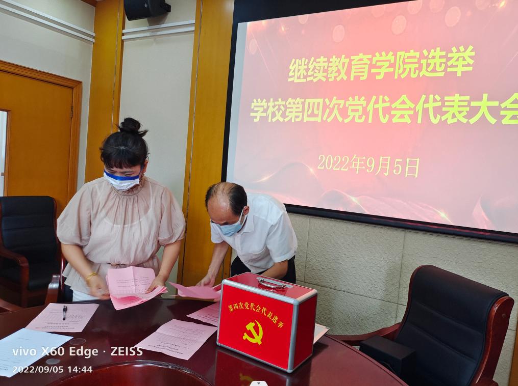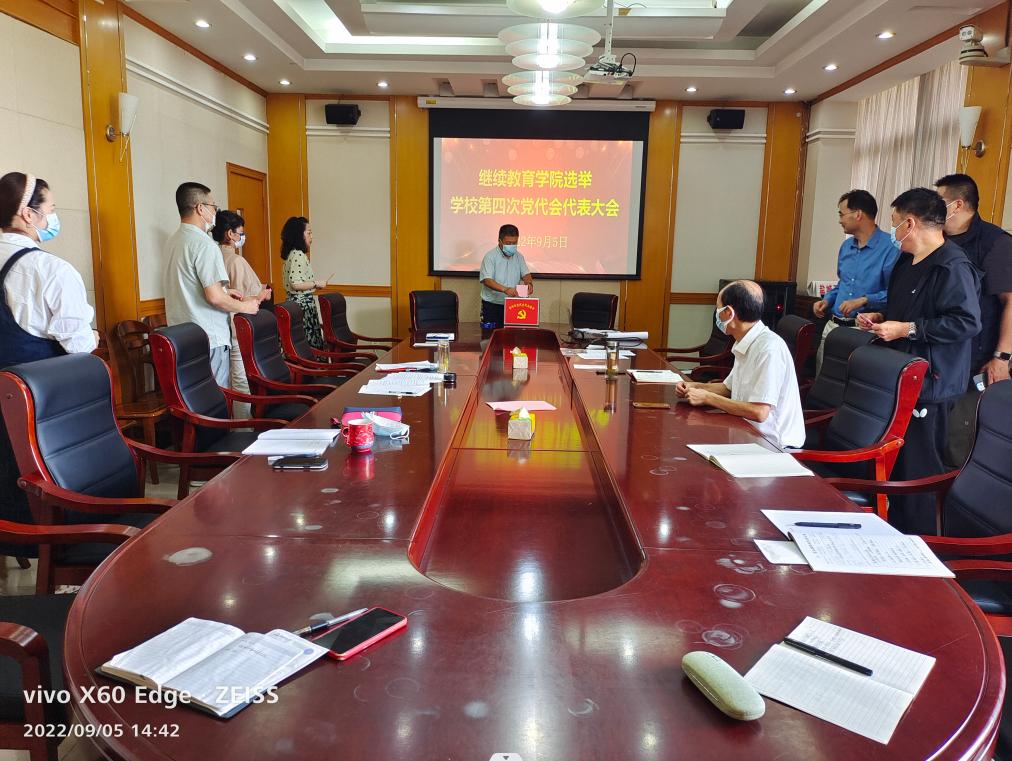 2022年9月5日下午,在北校区图书馆301会议室,QY球友会党总支召开党员大会,选举出席学校第四次党代会代表。大会由QY球友会党总支书记陈志华主持,全体11名党员参会。