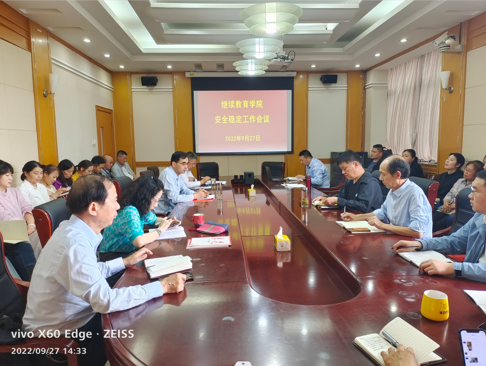 9月27日下午,在北校区图书馆301会议室,学院召开安全稳定工作专题会议,QY球友会党总支书记、经理陈志华主持,学院全体职工参加。