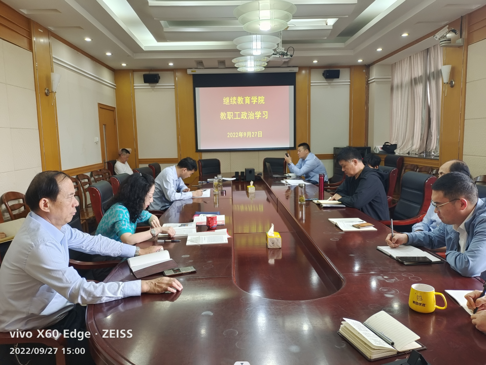 9月27日下午,在北校区图书馆301会议室,学院开展教职工政治学习活动,副经理李晓燕主持,全体在编人员参加。