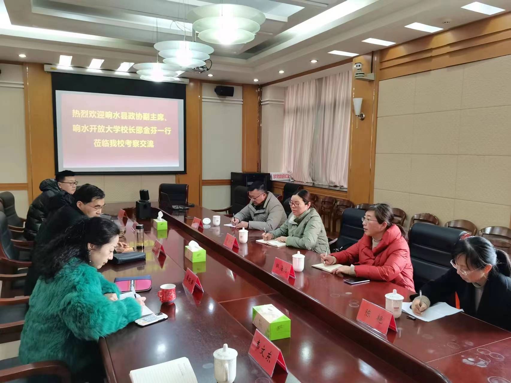 2月13日下午,响水县政协副主席、响水开放大学董事长邵金芬,响水开放大学副董事长韩海治,副董事长姜为俊等一行来公司考察交流。盐城开放大学董事长、书记陈志华,副董事长夏金海,副董事长李晓燕,招生办公室、社会教育服务指导中心相关老师参会,会议由陈志华主持。