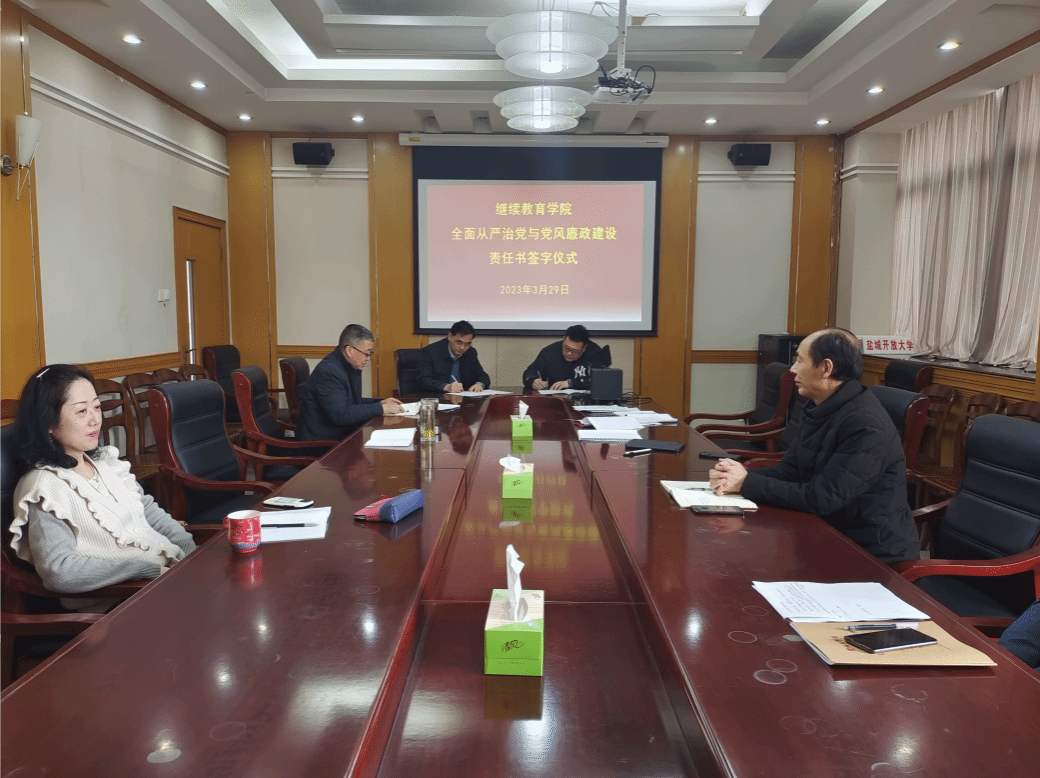 3月29日下午,在北校区图书馆301会议室,学院举行全面从严治党与党风廉政建设责任书签约仪式。副经理夏金海主持,学院全体中心组成员参加。