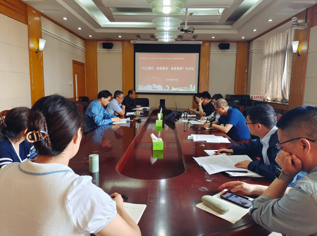6月6日上午,在北校区图书馆301会议室,学院开展学习贯彻习近平新时代中国特色社会主义思想主题教育“牢记嘱托、感恩奋进、走在前列”大讨论活动。QY球友会党总支书记、经理陈志华主持,全体中心组成员、党员参加。