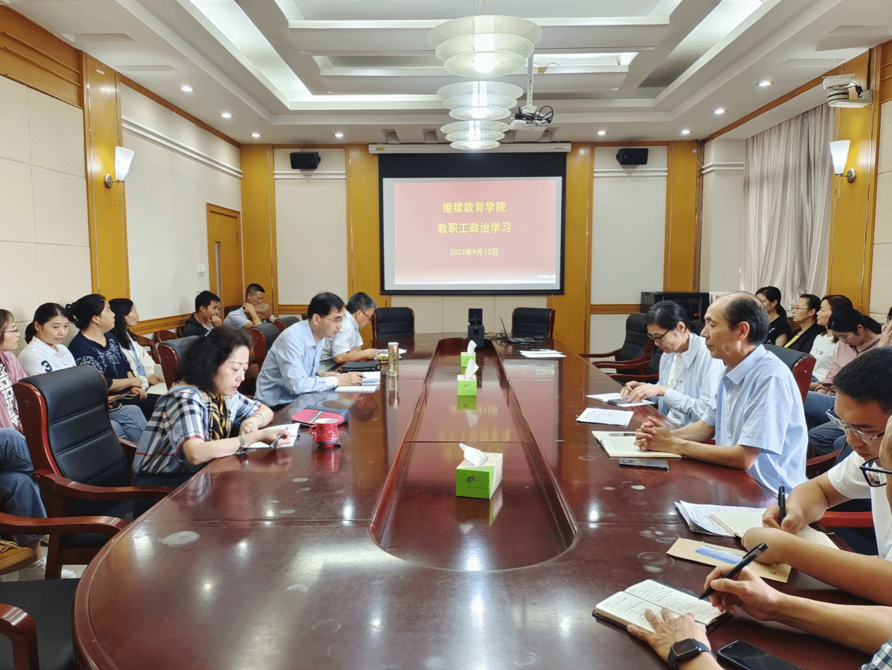 9月13日下午,在北校区图书馆301会议室,学院开展教职工政治学习活动,党总支书记、经理陈志华主持,全体职工参加。