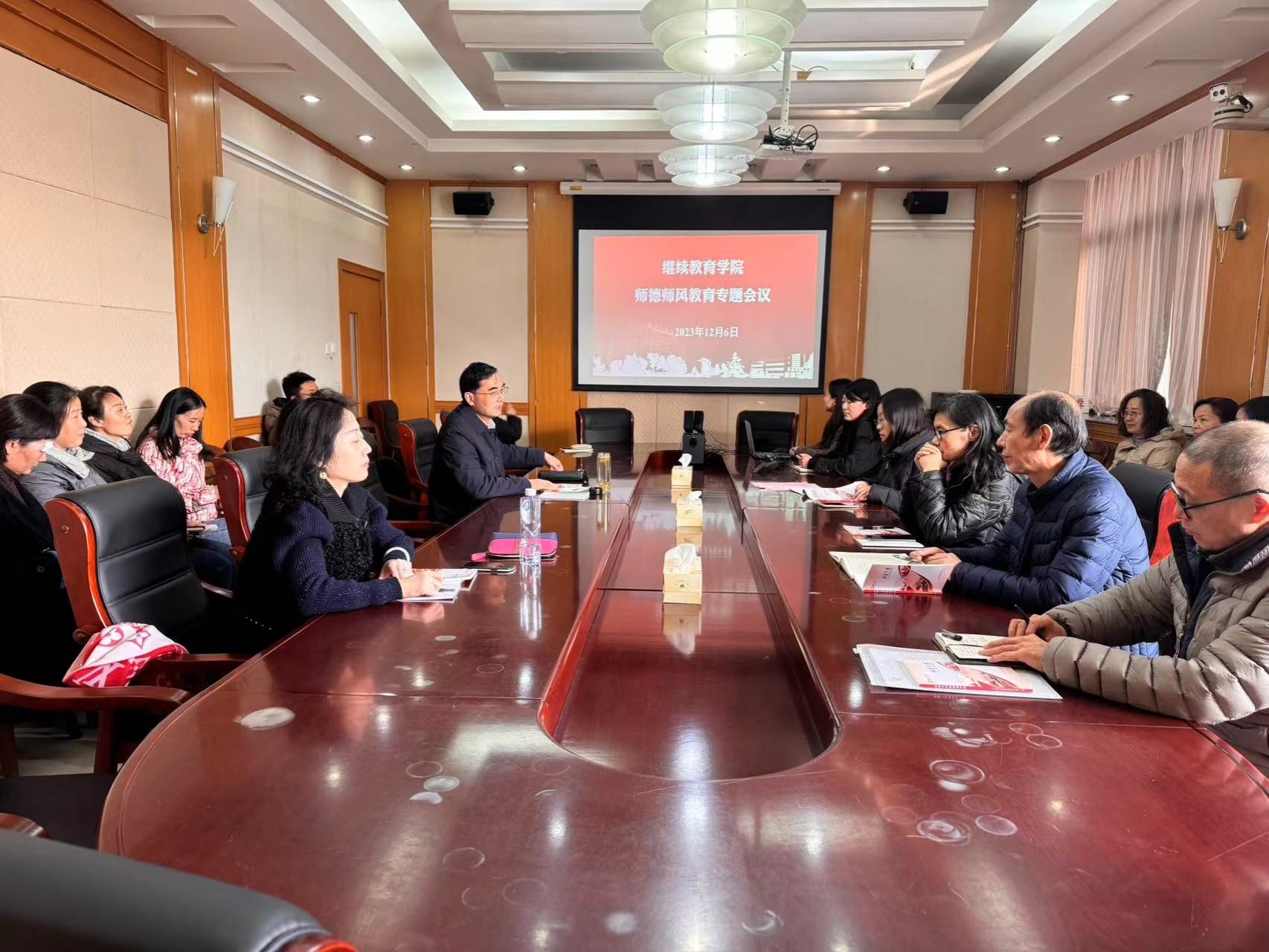 12月6日下午,在北校区图书馆301会议室,学院组织开展师德师风教育专题会,活动由党总支书记陈志华主持,全体职工和班主任参加。