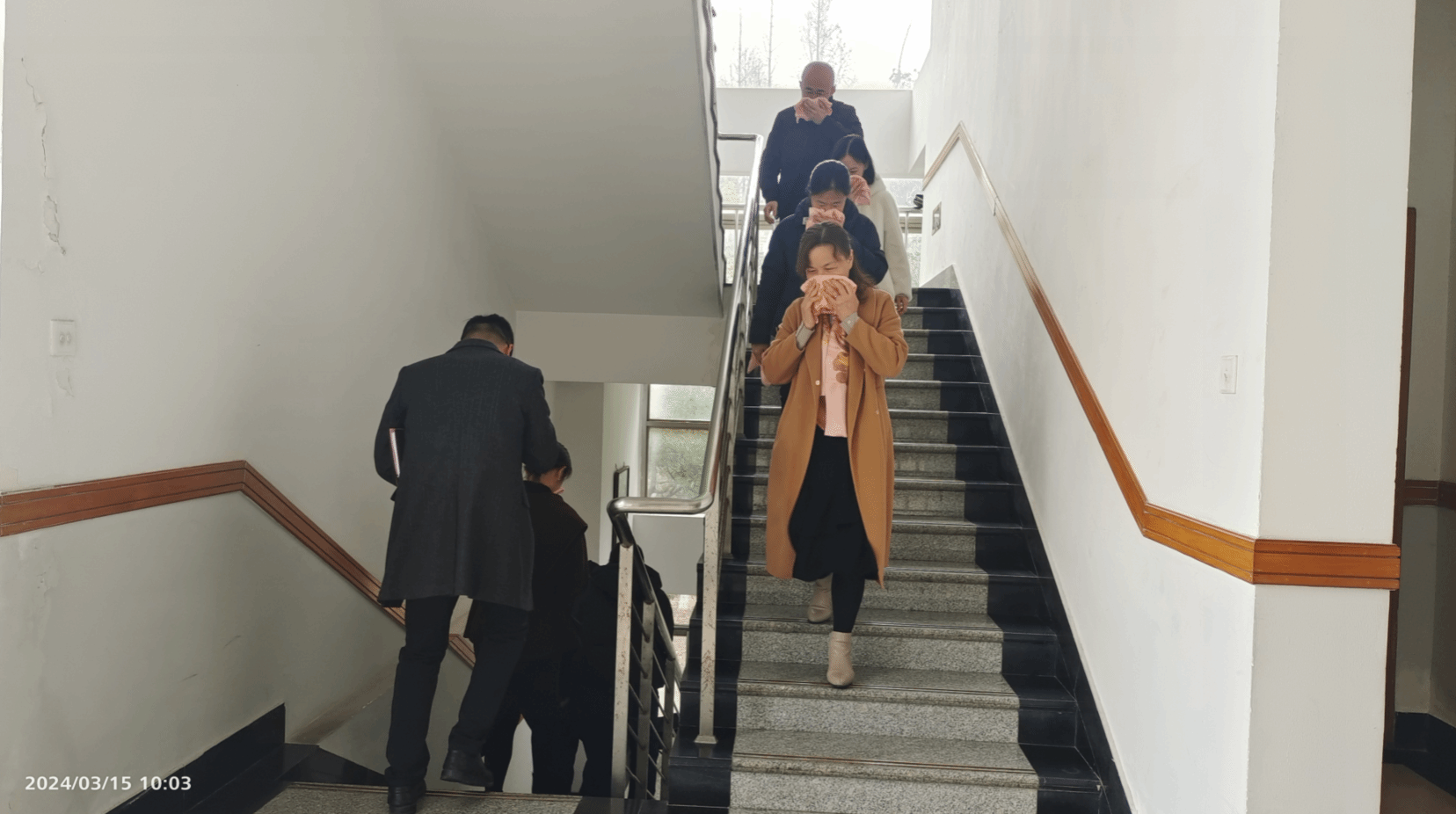 会上,大家通过“中国消防”微信公众号共同观看由教育部、国家消防救援局联合举办的2024年春季学校火灾疏散逃生演练直播公开课。学习结束后,学院组织全体职工就地开展了春季火灾疏散逃生大演练活动。