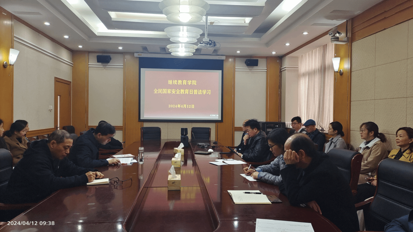 4月12日上午,在北校区图书馆301会议室,学院组织开展第九个全民国家安全教育日普法宣传活动,党总支书记、经理陈志华主持,全体职工参加。