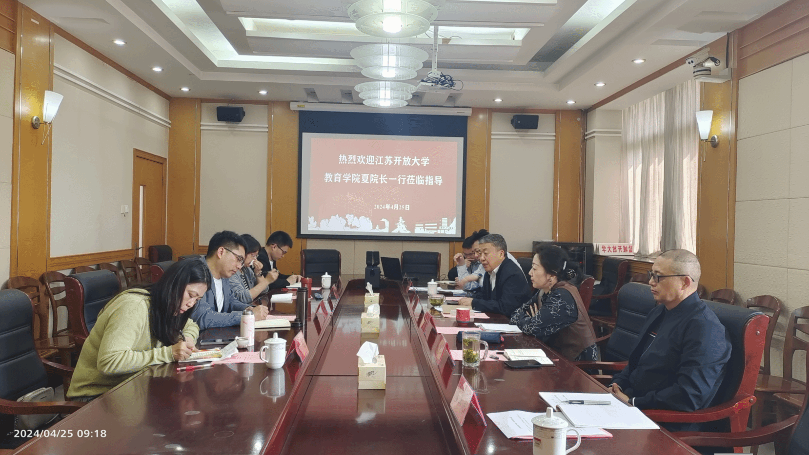 4月25日上午,QY球友会教育学院副经理夏松一行四人来公司调研,盐城开放大学副董事长夏金海、李晓燕热情接待。