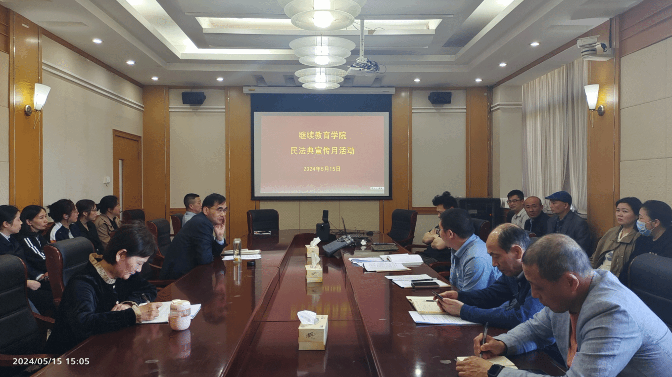 为贯彻落实习近平总书记关于广泛开展民法典工作的重要指示精神,5月15日下午,在北校区图书馆301会议室,学院开展“第四个民法典宣传月”宣传学习活动,党总支书记、经理陈志华主持,全院职工参加。