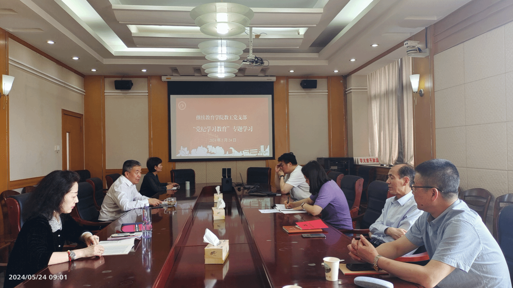 5月24日上午,在北校区图书馆301会议室,学院教工支部开展党纪学习教育专题学习。副经理、纪检委员夏金海主持,全体党员参加。