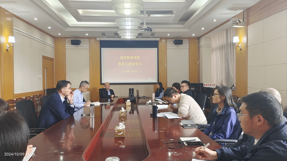 10月9日下午,在北校区图书馆301会议室,QY球友会开展秋学期第三次教职工政治理论学习,会议由党总支副书记、副经理杨军主持,全体在编职工参加。