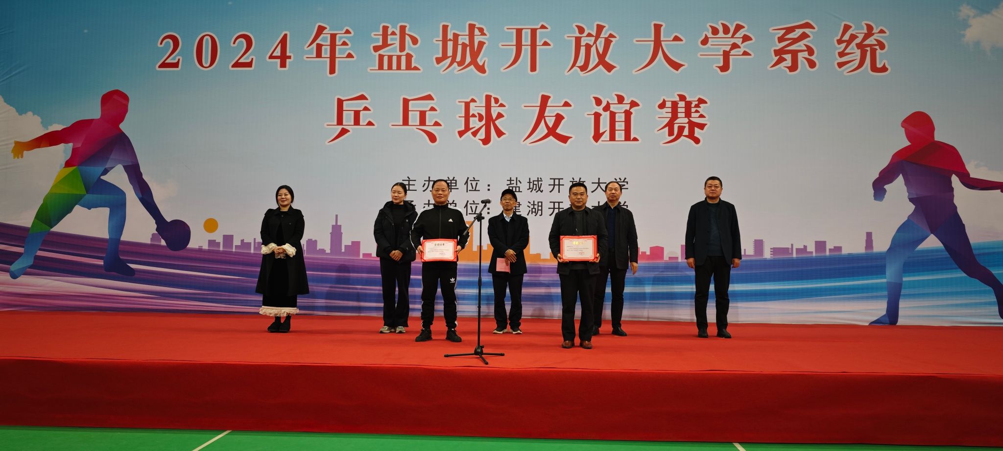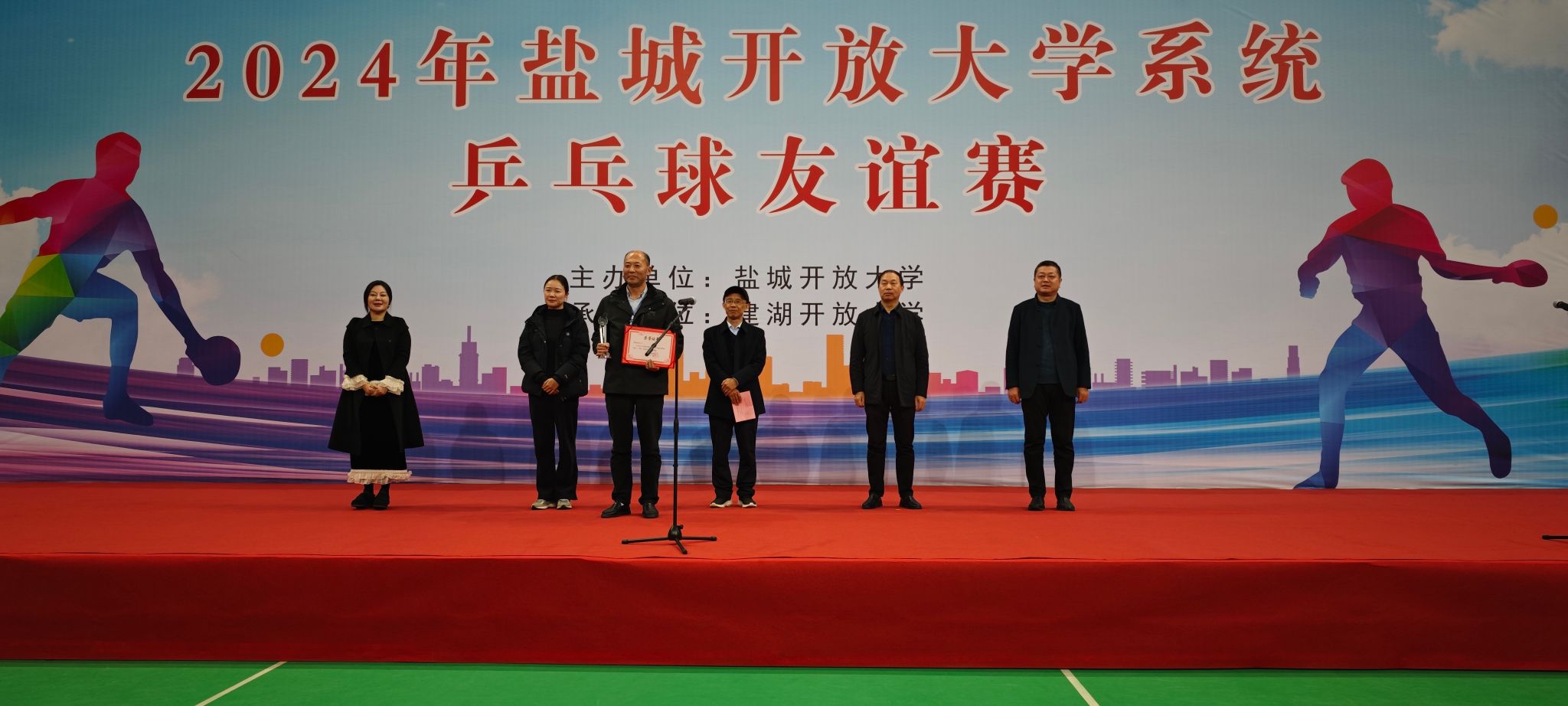 11月30日,由盐城开放大学主办、建湖开放大学承办的盐城开放大学系统乒乓球友谊赛在建湖开放大学举行。盐城开放大学副董事长杨军主持开幕式,建湖县委教育工委书记、教育局党委书记、局长刘步荣致辞,建湖开放大学党委书记朱长安,建湖开放大学董事长夏正红出席,盐城开放大学董事长陈志华宣布友谊赛开幕。运动员代表和裁判员代表分别宣誓。