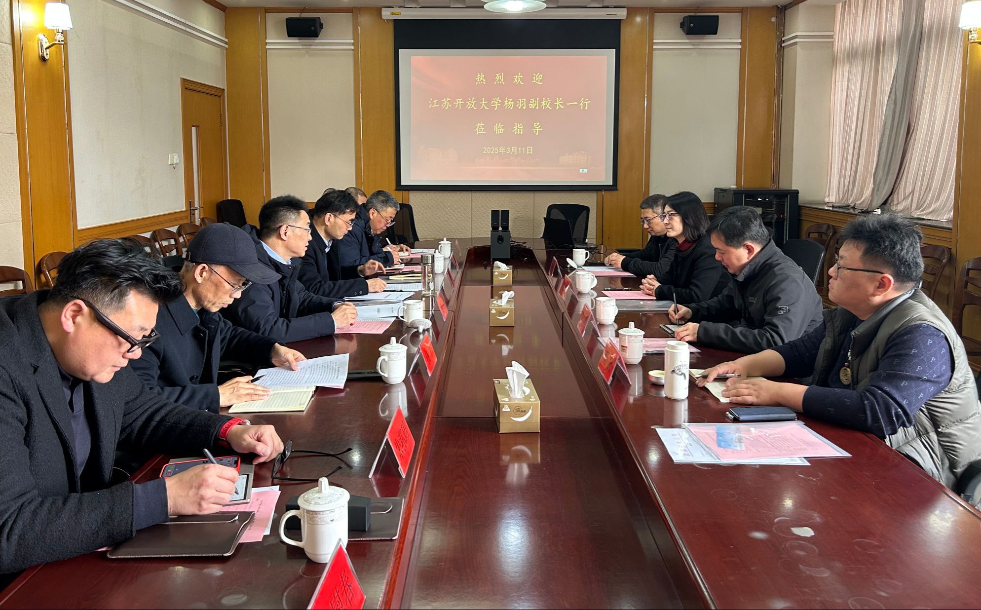 会上,双方就老年开放教育招生政策、老年教育团队队伍建设、课程建设等业务问题展开深入交流。会后,杨羽一行参观了拟挂牌成立的盐城老年开放大学的教学场地和设施。