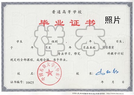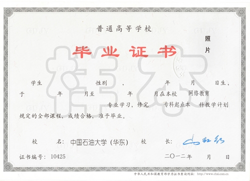毕业证书签章单位:中国石油大学(华东) (毕业证书式样以员工毕业时教育部当年最新规定政策为准)