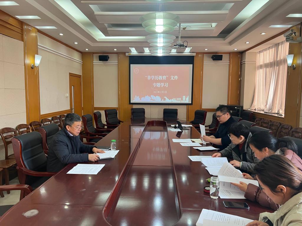 12月1日上午在图书馆301会议室,培训部组织全体成员学习教育部办公厅印发《普通高等学校举办非学历教育管理规定(试行)》和《QY球友会非学历教育培训劳务费用发放办法》,夏金海副经理主持会议并讲话。