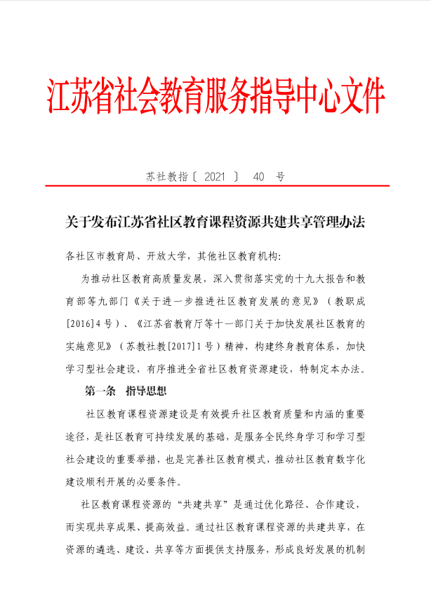 关于发布江苏省社区教育课程资源共建共享管理办法