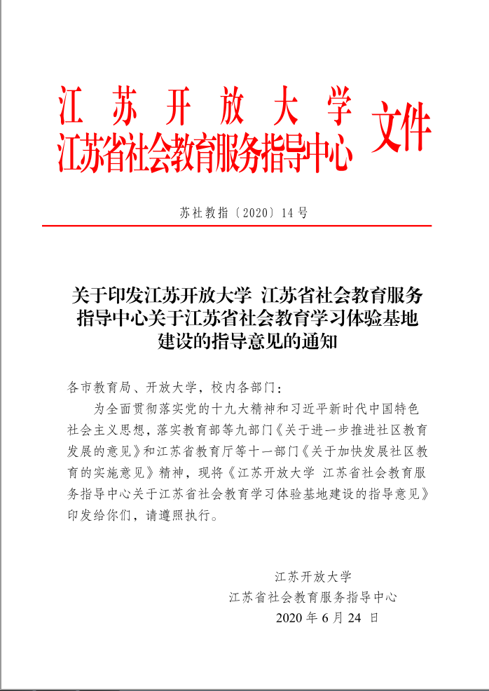 关于印发QY球友会、江苏省社会教育服务指导中心关于江苏省社会教育学习体验基地建设的指导意见的通知