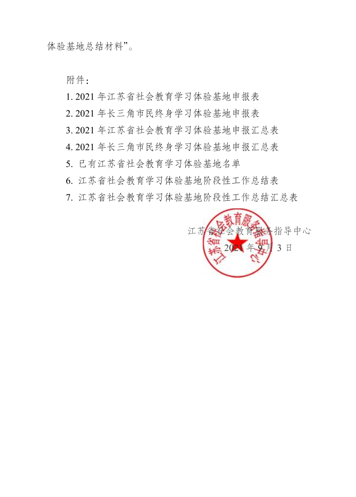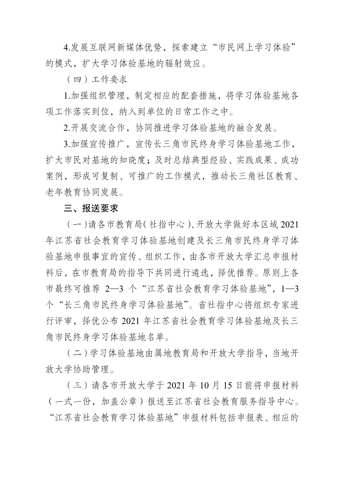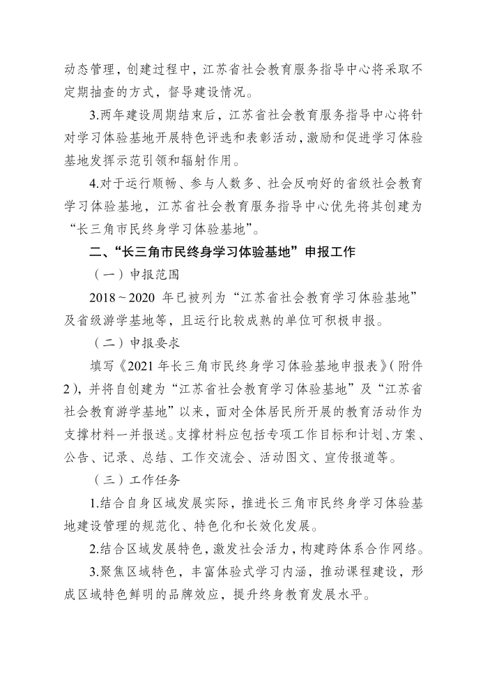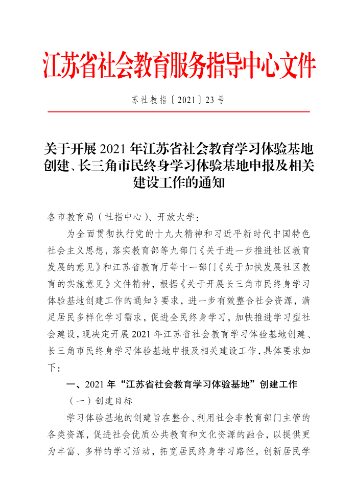 关于开展2021年江苏省社会教育学习体验基地创建、长三角市民终身学习体验基地申报及相关建设工作的通知