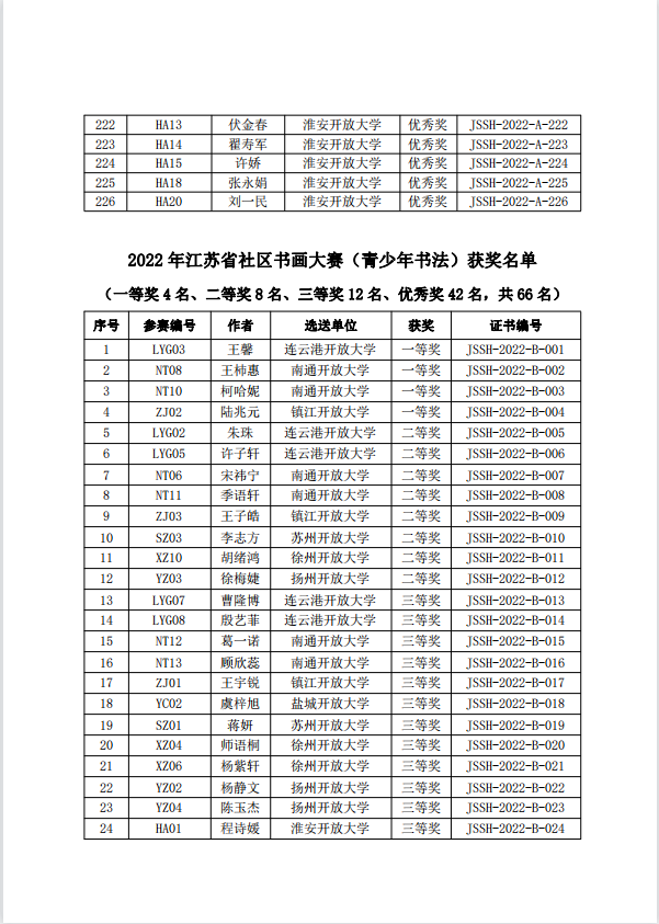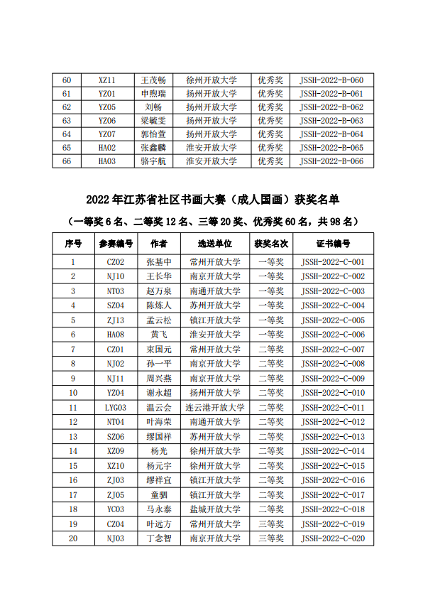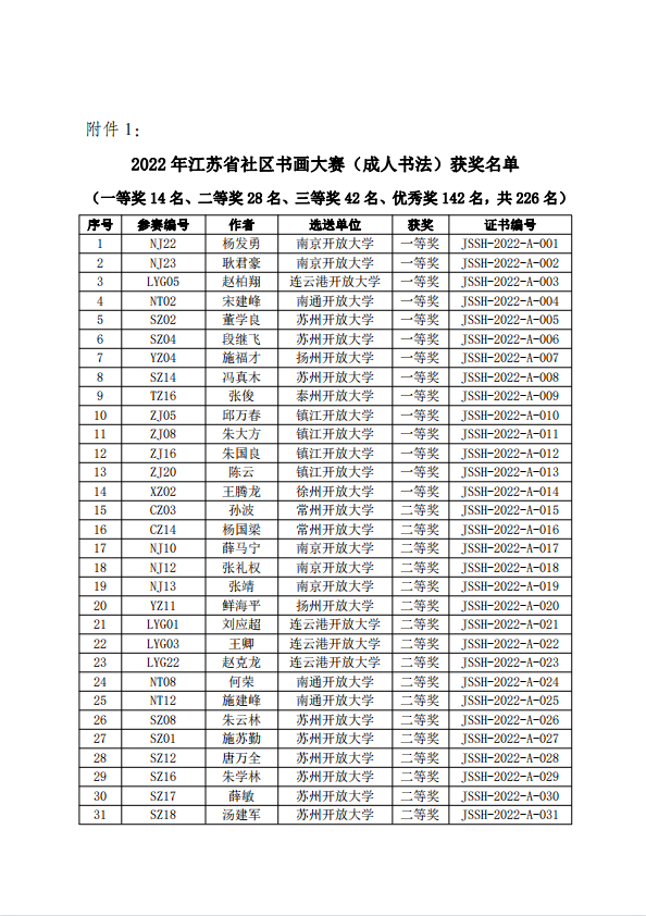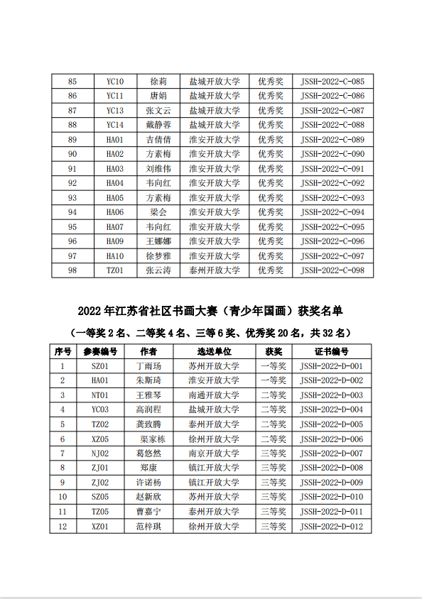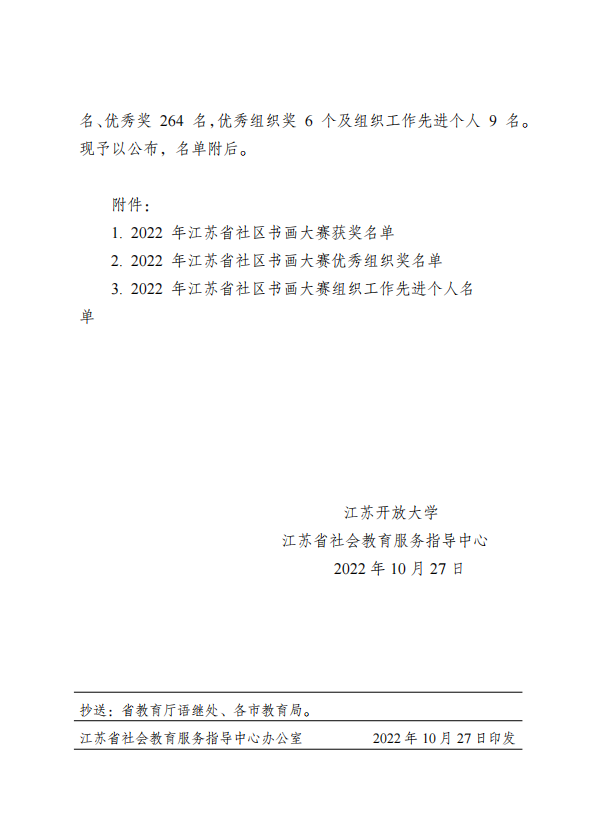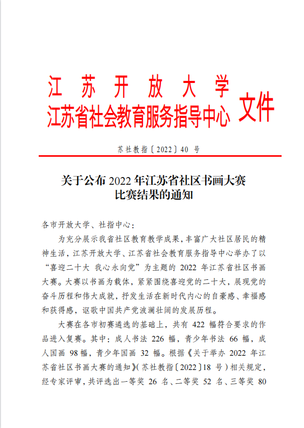 关于公布2022年江苏省社区书画大赛比赛结果的通知