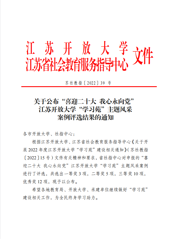 关于公布“喜迎二十大 我心永向党” QY球友会“学习苑”主题风采 案例评选结果的通知