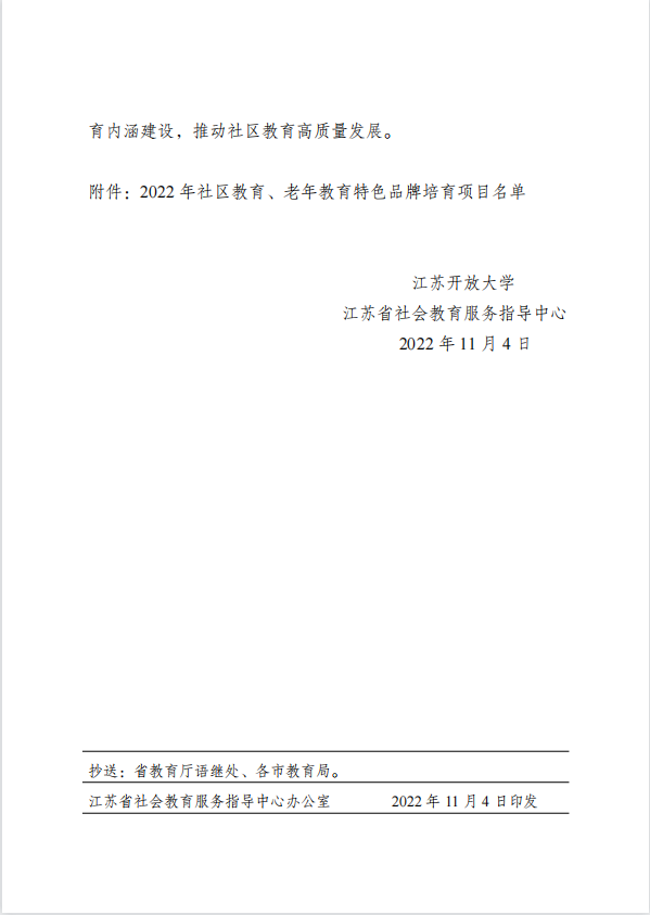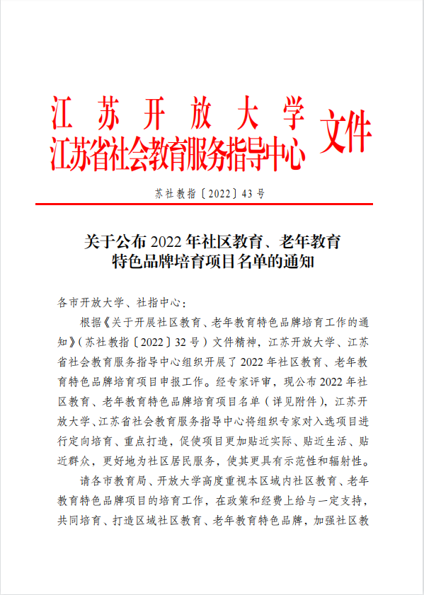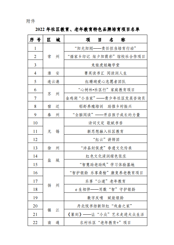 关于公布2022年社区教育、老年教育特色品牌培育项目名单的通知