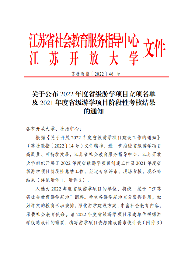 关于公布2022年度省级游学项目立项名单及2021年度省级游学项目阶段性考核结果的通知