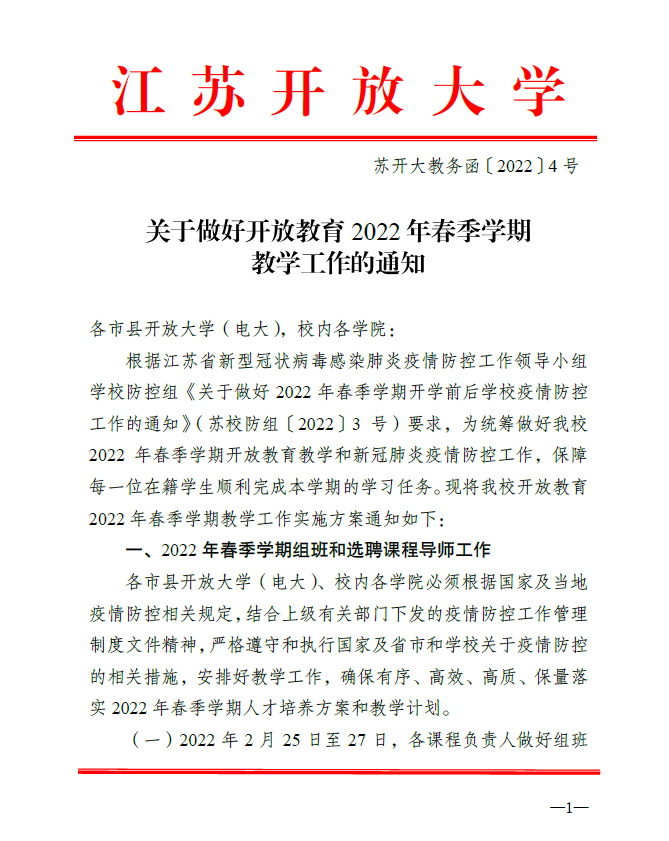 关于做好开放教育2022年春季学期教学工作的通知