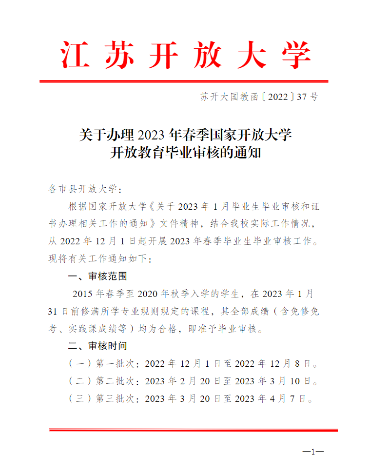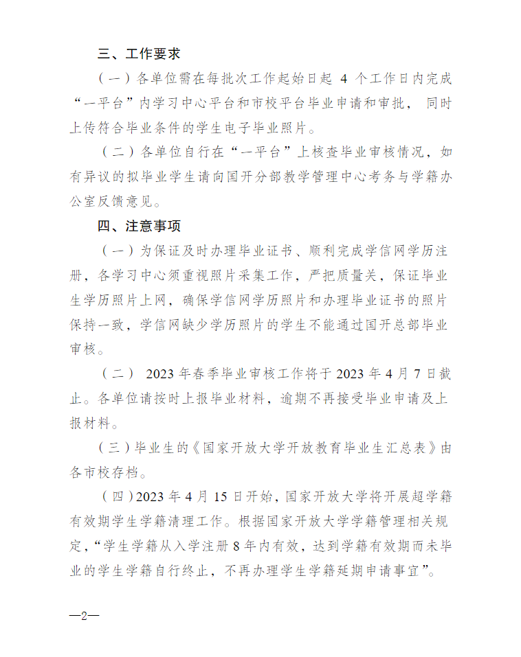 关于办理2023年春季国家开放大学开放教育毕业审核的通知