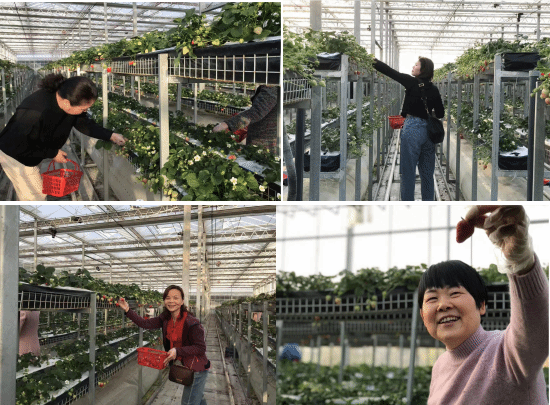 射阳县现代农业产业园主导产业为农业科技,综合,食品工业,现代服务业。通过参观,大家了解到园区现代农业整体运营情况、现代农业应用技术等,随着该县对高效设施农业的扶持,该产业园正在以高质量农业产业化引领乡村振兴。在参观过程中,女教工们也纷纷参与到草莓采摘的活动中,在繁忙的工作之余,体验丰收的喜悦。